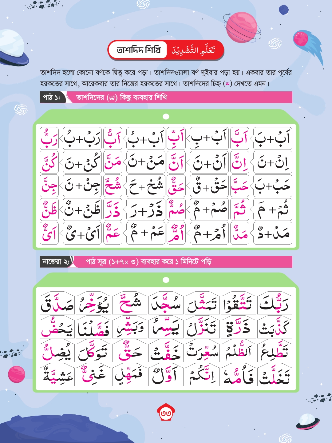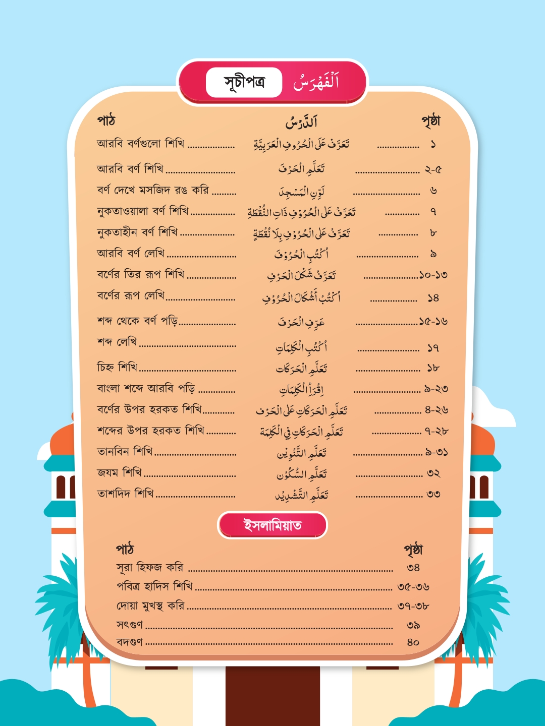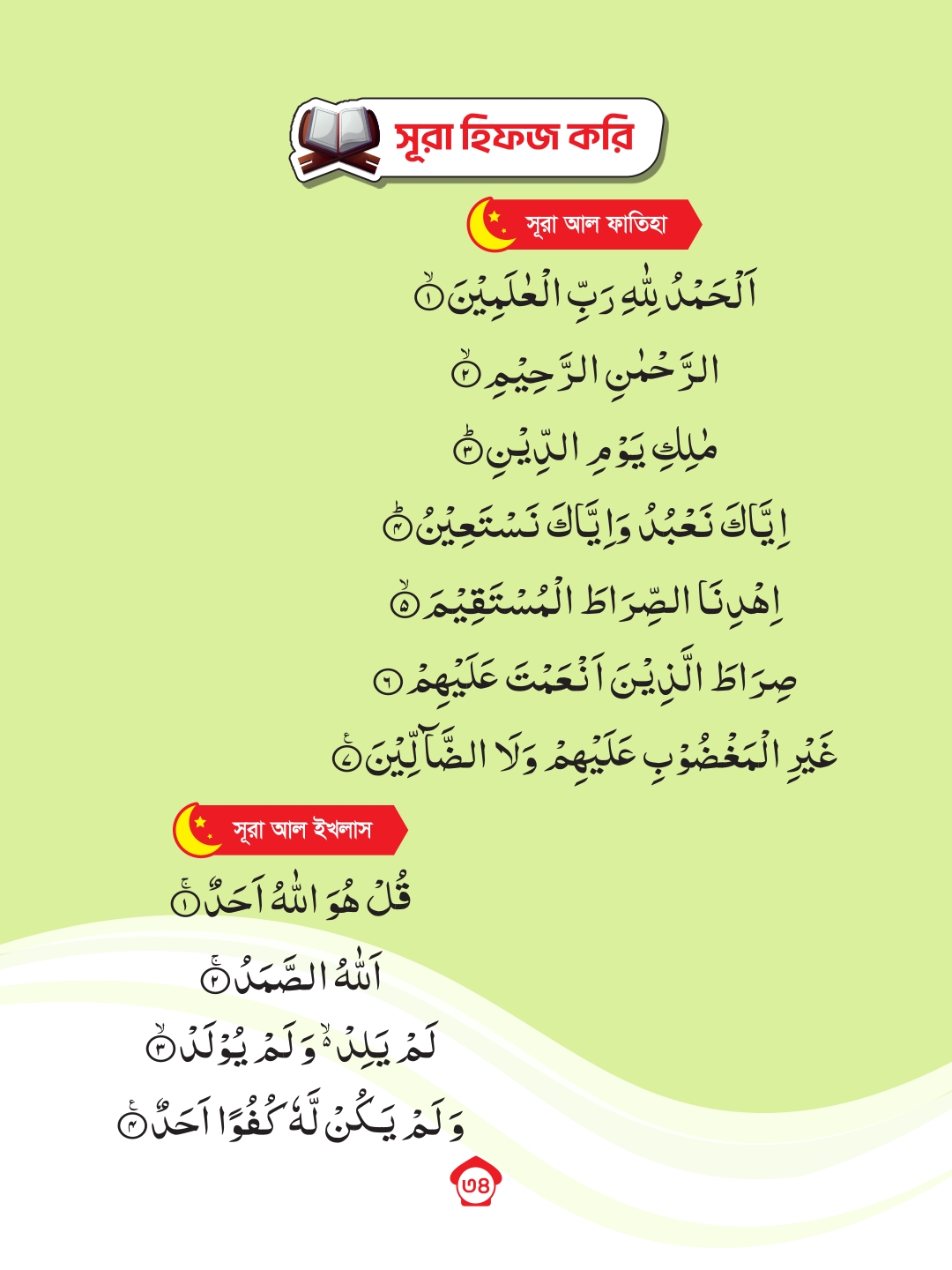 এছাড়া শিশুদের নৈতিক ও আধ্যাত্মিক বিকাশের উদ্দেশ্যে সংযোজন করা হয়েছে ইসলামিয়াত অংশ, যাতে রয়েছে ছোট সূরা, হাদিস, দোয়া, আদব ও আখলাক বিষয়ক পাঠ।