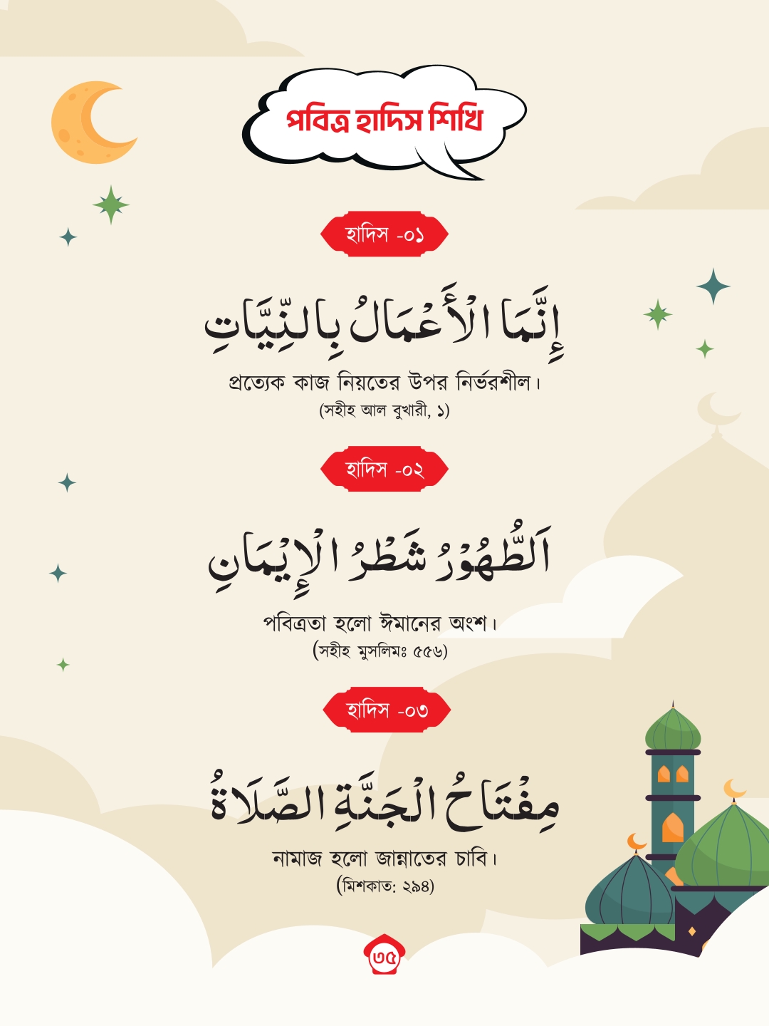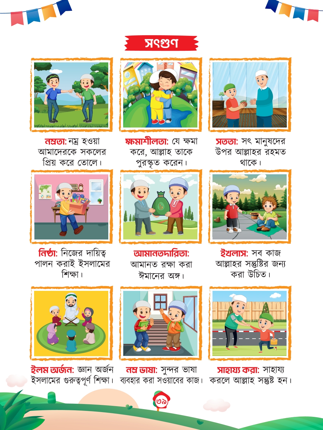 এছাড়া শিশুদের নৈতিক ও আধ্যাত্মিক বিকাশের উদ্দেশ্যে সংযোজন করা হয়েছে ইসলামিয়াত অংশ, যাতে রয়েছে ছোট সূরা, হাদিস, দোয়া, আদব ও আখলাক বিষয়ক পাঠ।