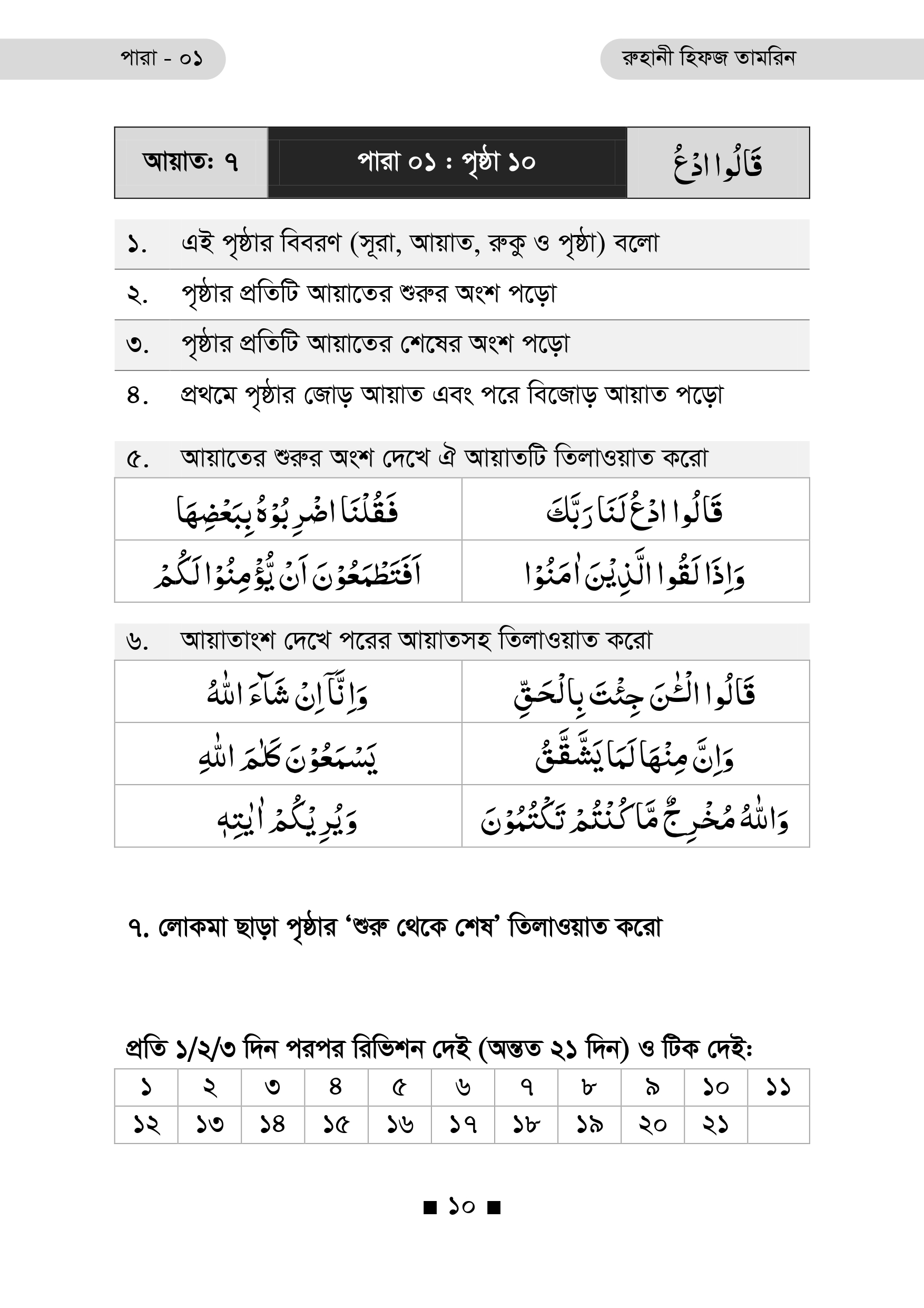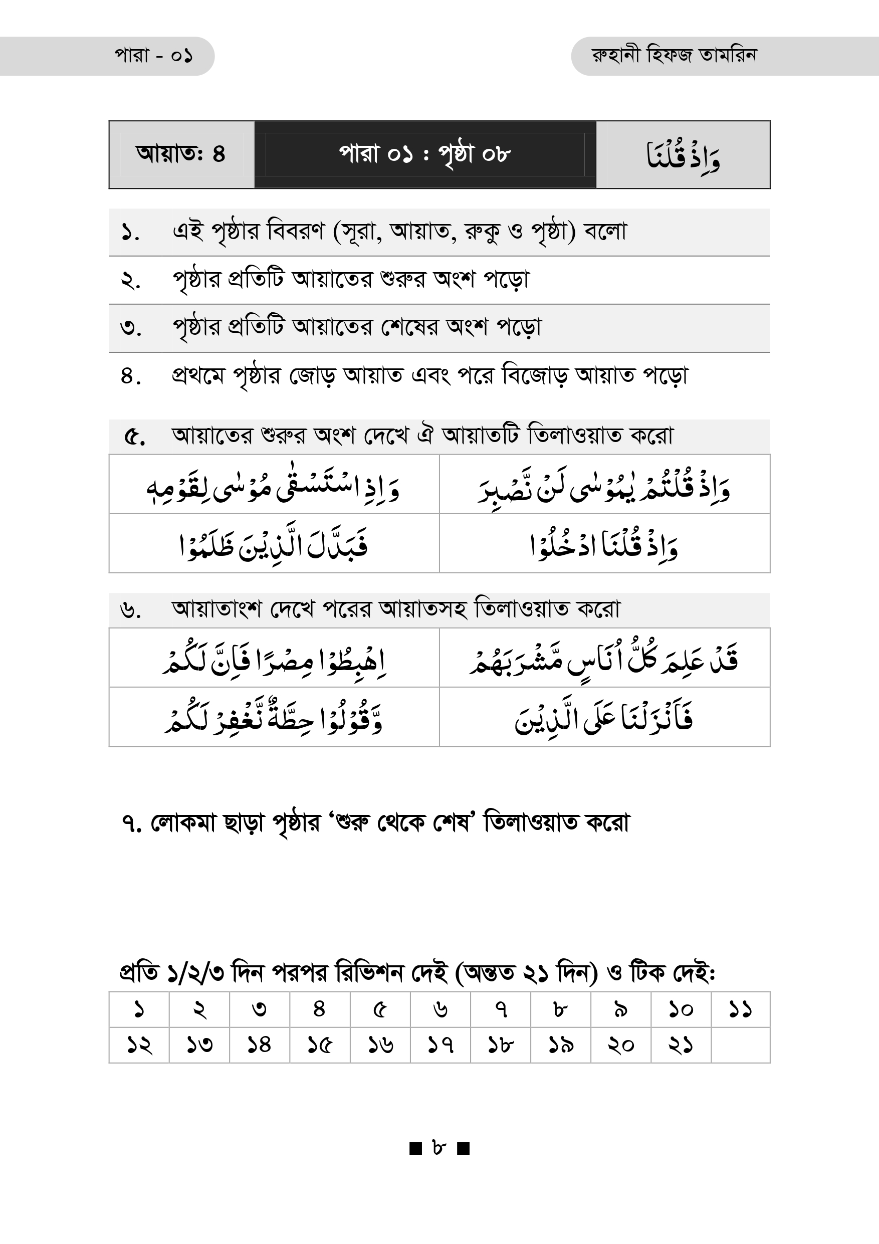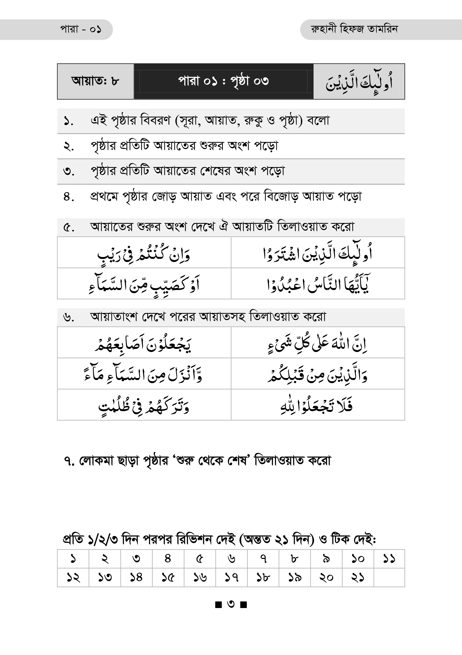 প্রতিটি পৃষ্ঠার নিচে রয়েছে ২১ দিনের রিভিশন টিক বক্স, যা ধারাবাহিক অধ্যবসায় ও স্মৃতি দৃঢ়ীকরণে অনুপ্রেরণা যোগায়।