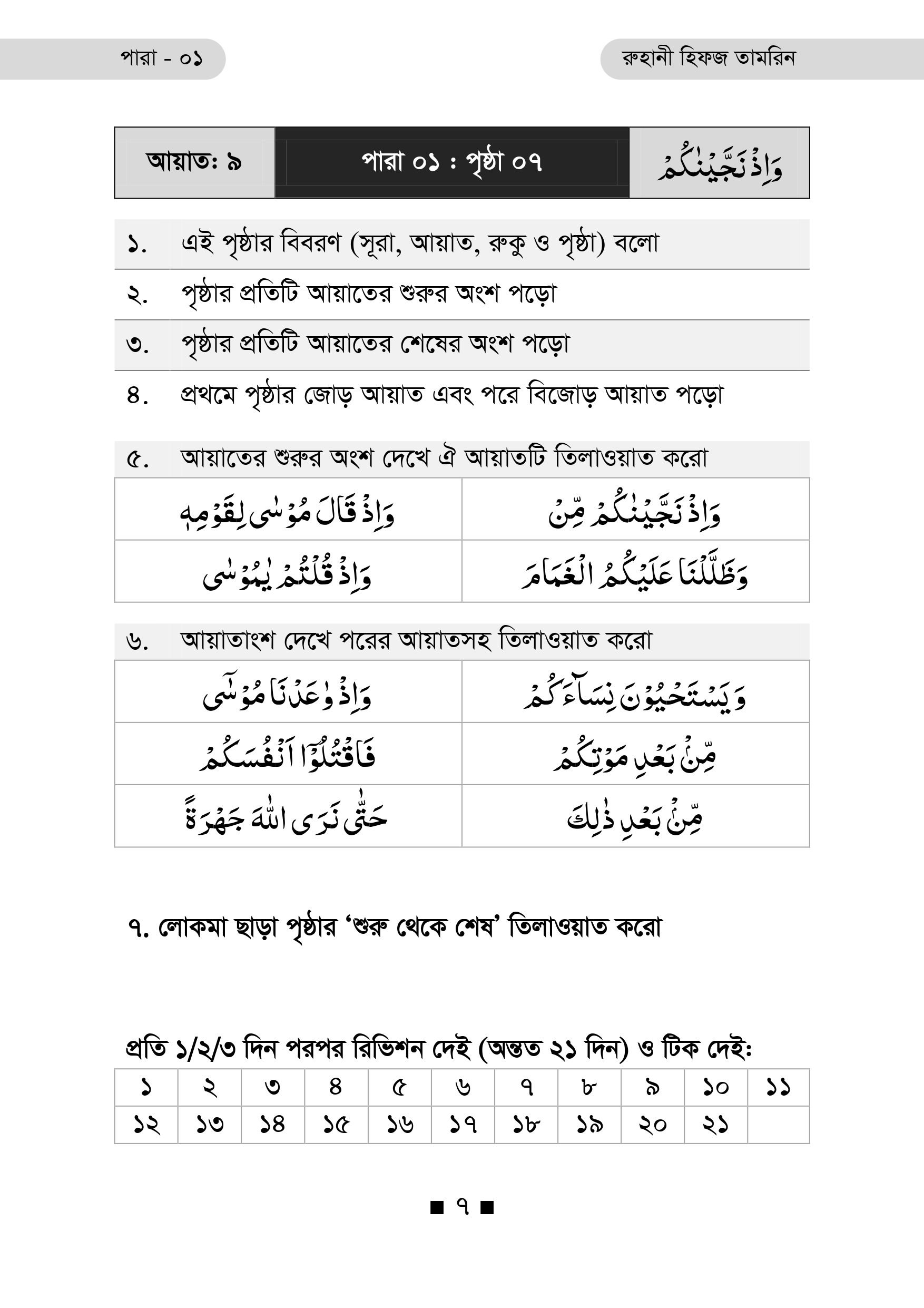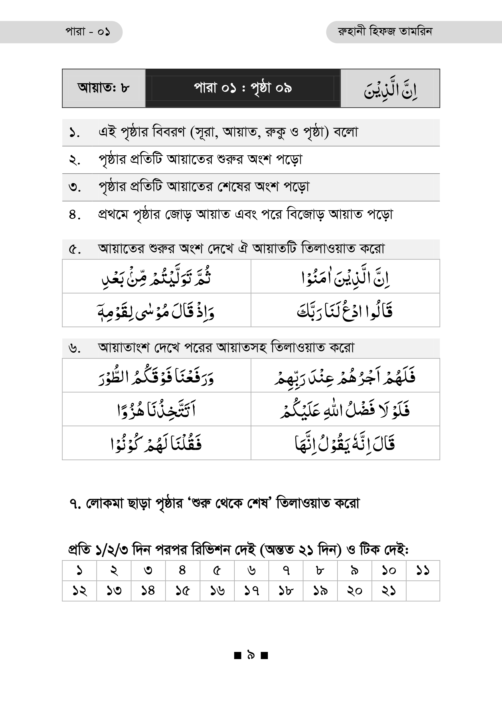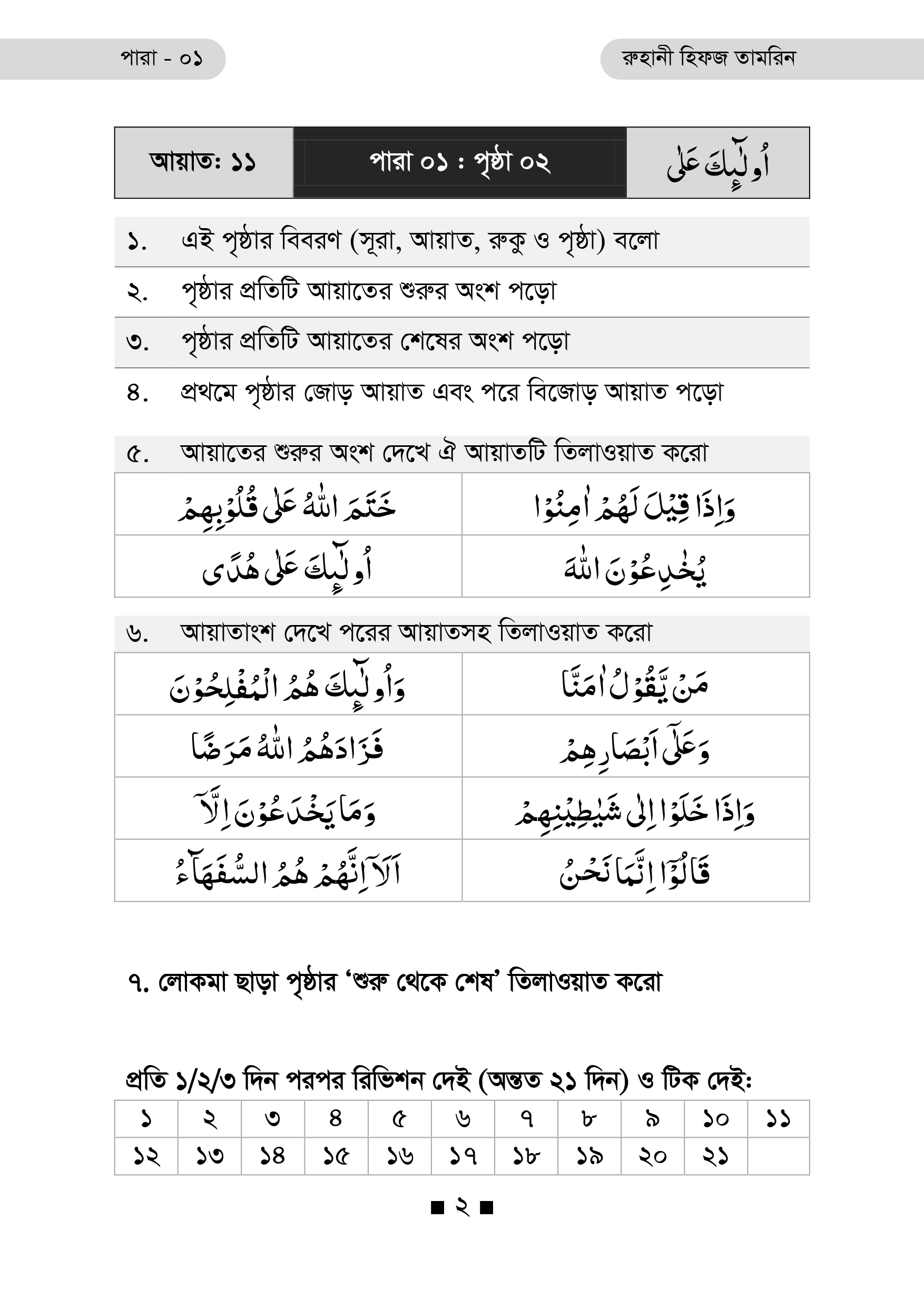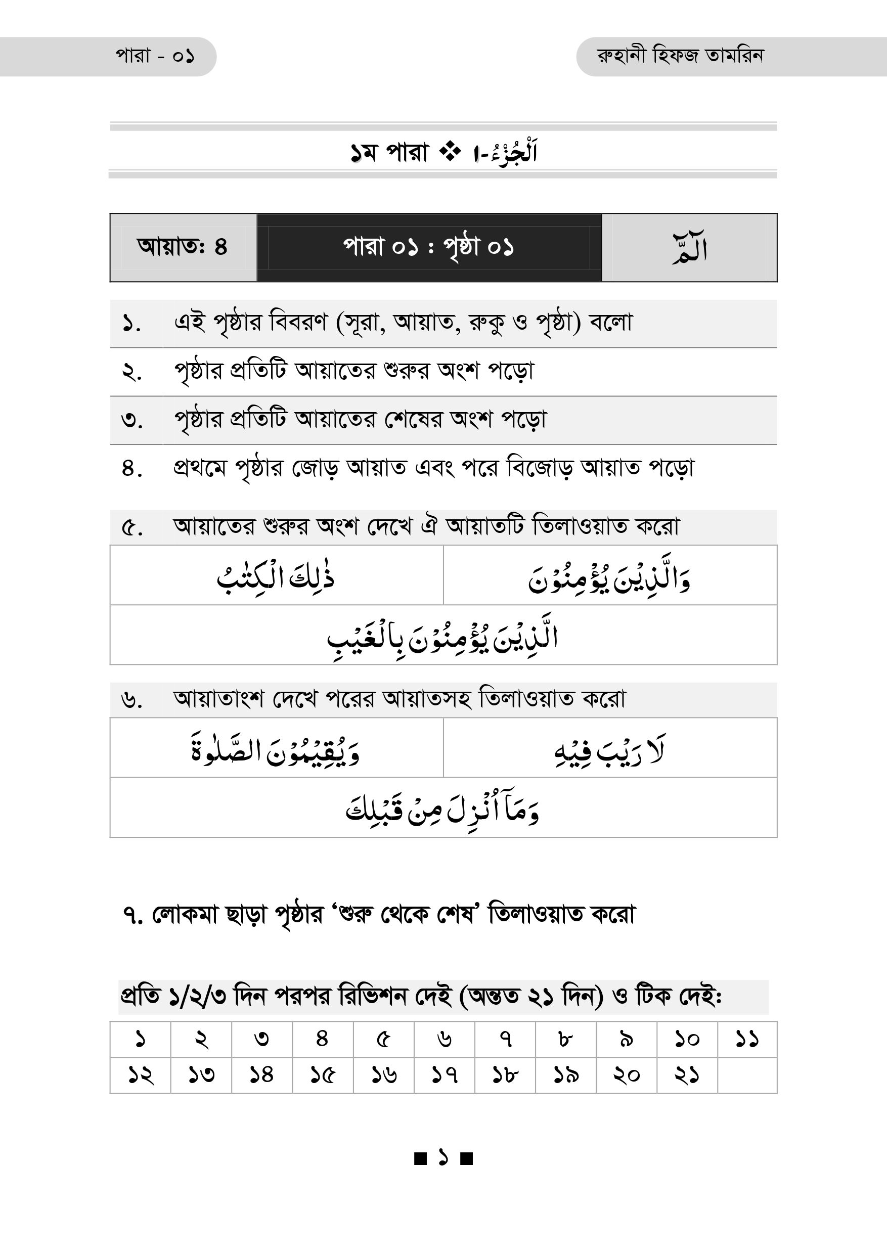 প্রতিটি পৃষ্ঠার নিচে রয়েছে ২১ দিনের রিভিশন টিক বক্স, যা ধারাবাহিক অধ্যবসায় ও স্মৃতি দৃঢ়ীকরণে অনুপ্রেরণা যোগায়।