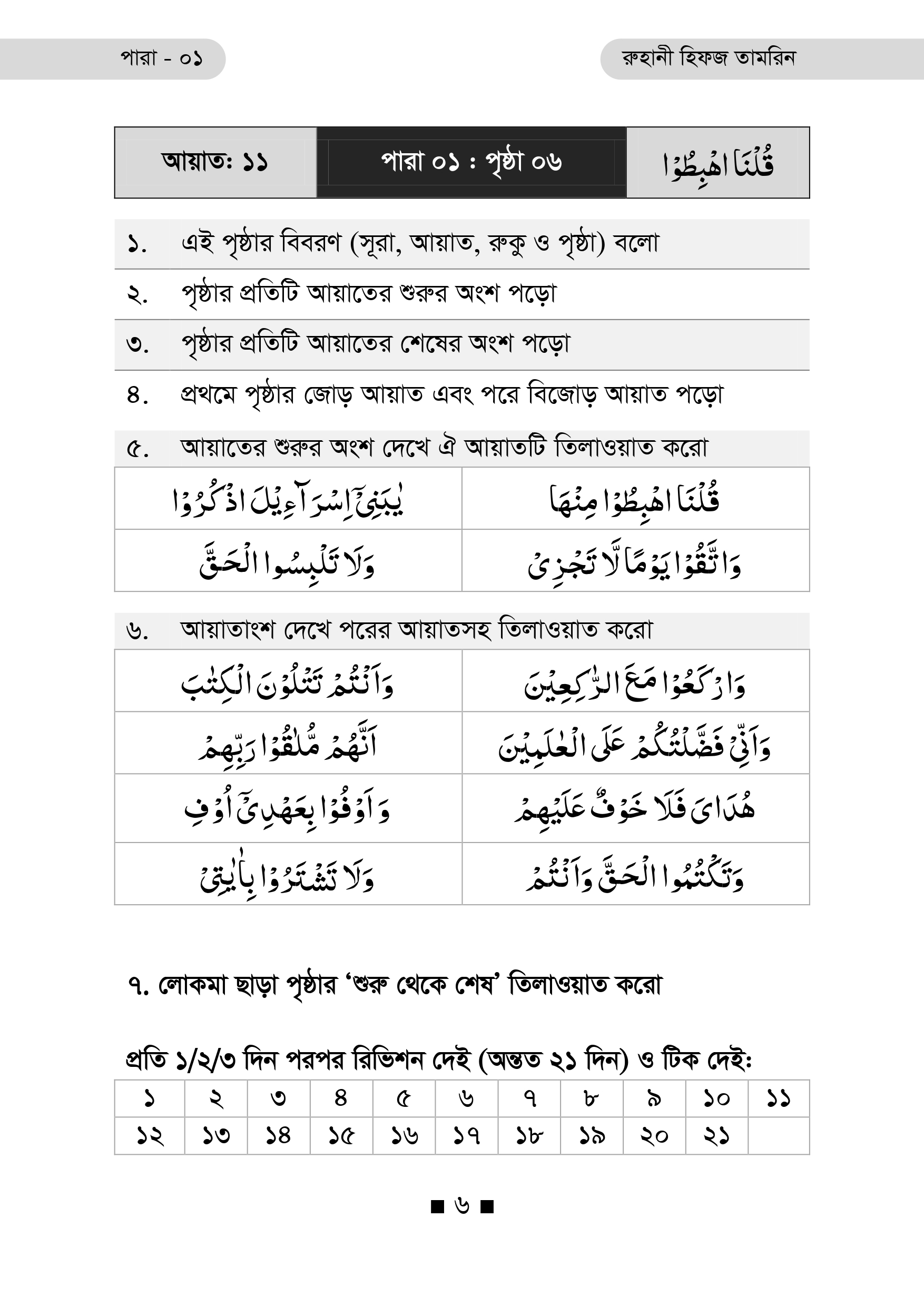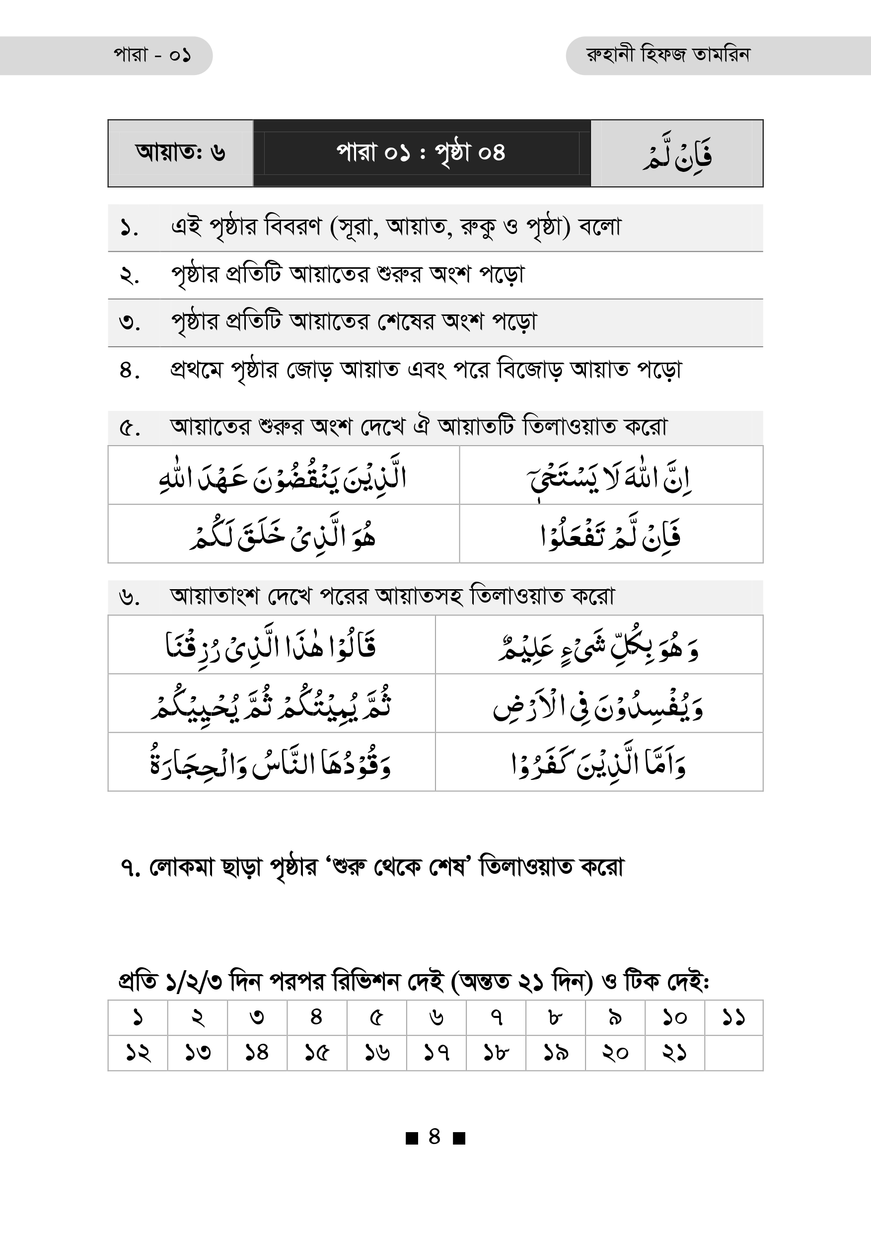 7. লোকমা ছাড়া সম্পূর্ণ পৃষ্ঠা তিলাওয়াত
