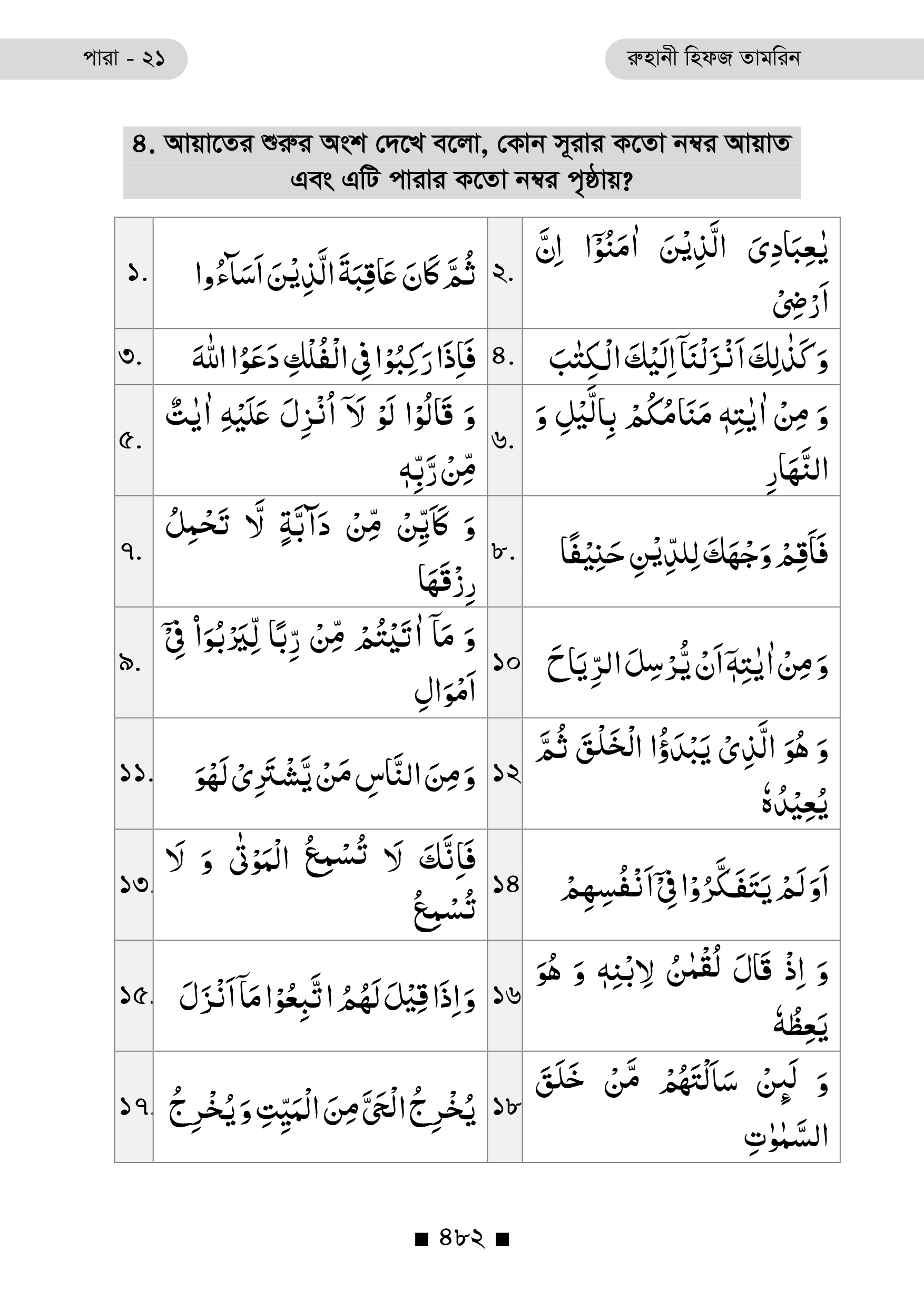 2.    আয়াতের শুরু অংশ পাঠ